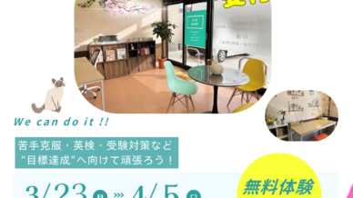 3月23日(月)より春期講習会がスタートします。新学期へ向けて復習を徹底する、予習を進める、英検対策を始めるなど、学習プランは生徒様お一人おひとりに合わせて設定いたします。これまで苦手だった文法や長文...