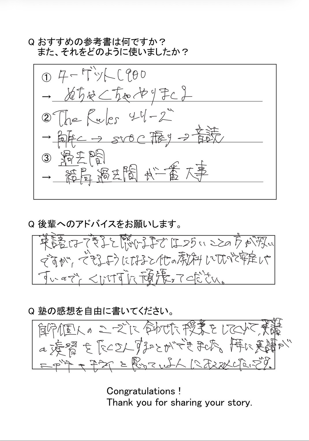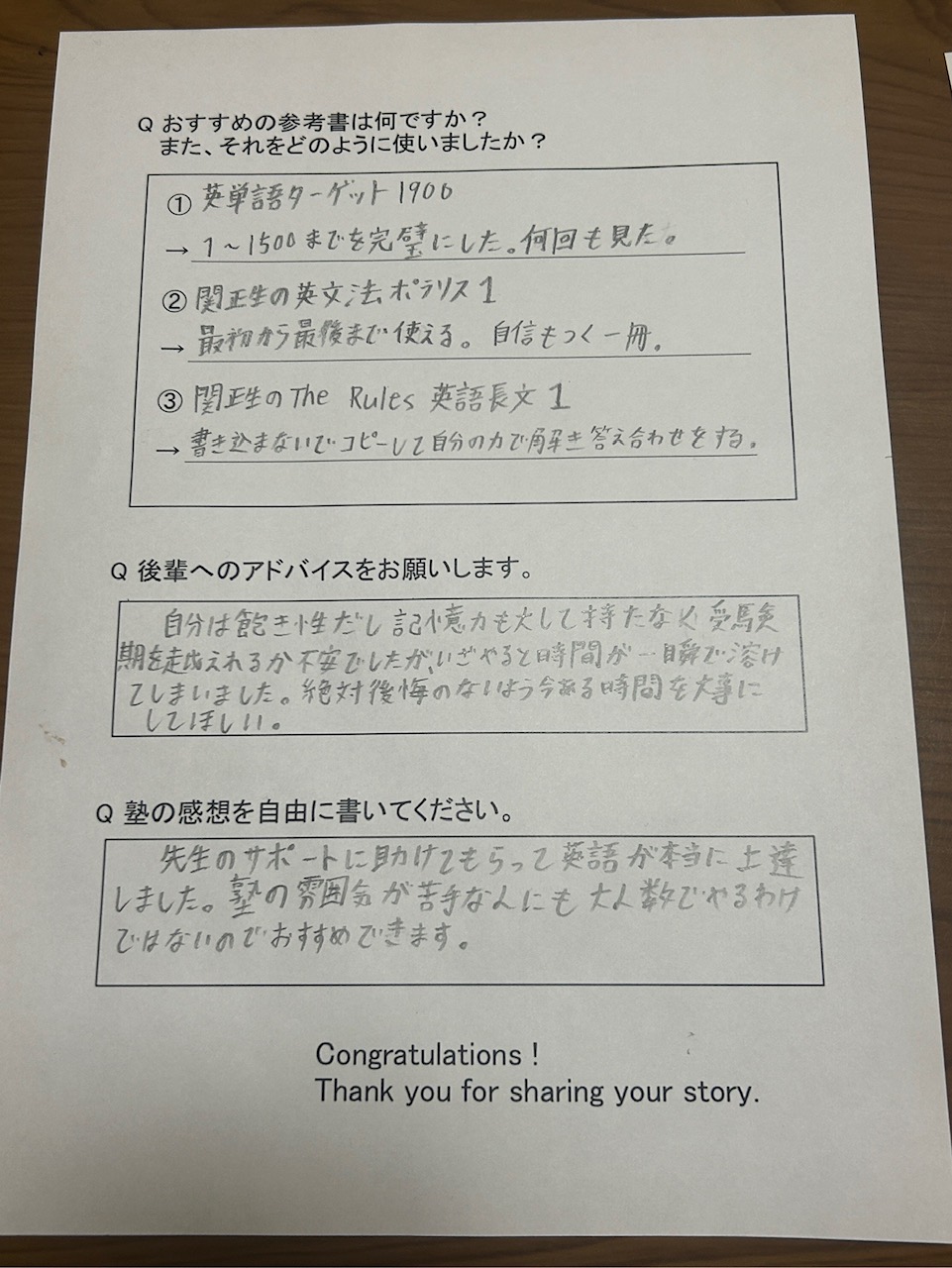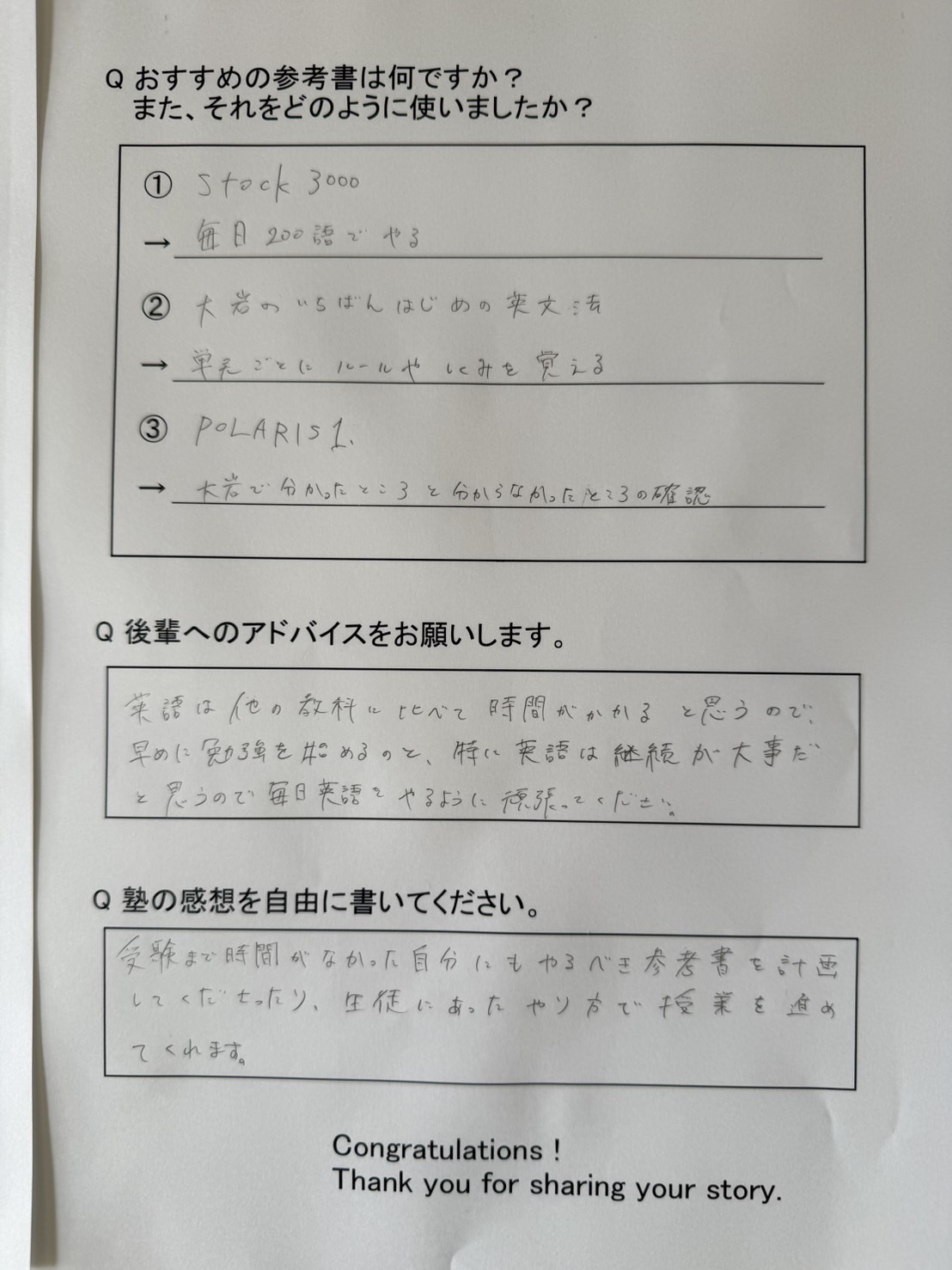 英語が苦手な生徒でも、「分かる」「できる」を実感できる指導を大切にしています。