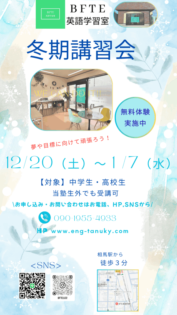 12/20(土)からスタートする冬期講習会のお申込みを募集しております!